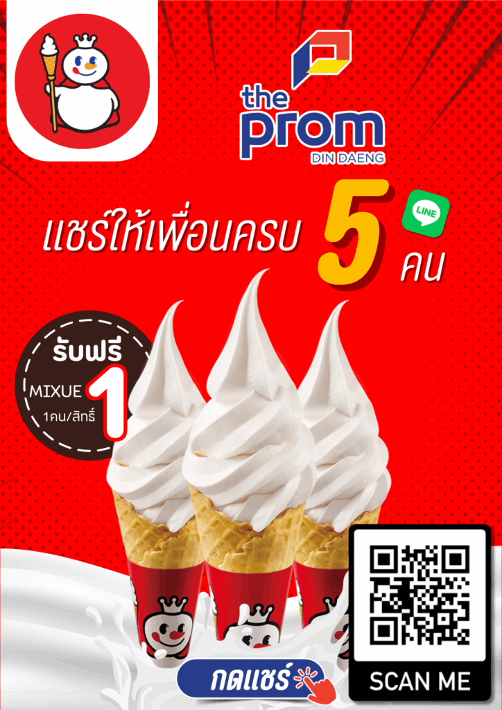 กดรับโปรใน LINE เดอะพร้อม ➡️ แชร์ให้เพื่อนครบ 5 คน ➡️ แสดงคูปองกับพนักงานก็รับไปเลย! ฟรี 1 โคน เฉพาะ Mixue สาขาเดอะพร้อม ดินแดง